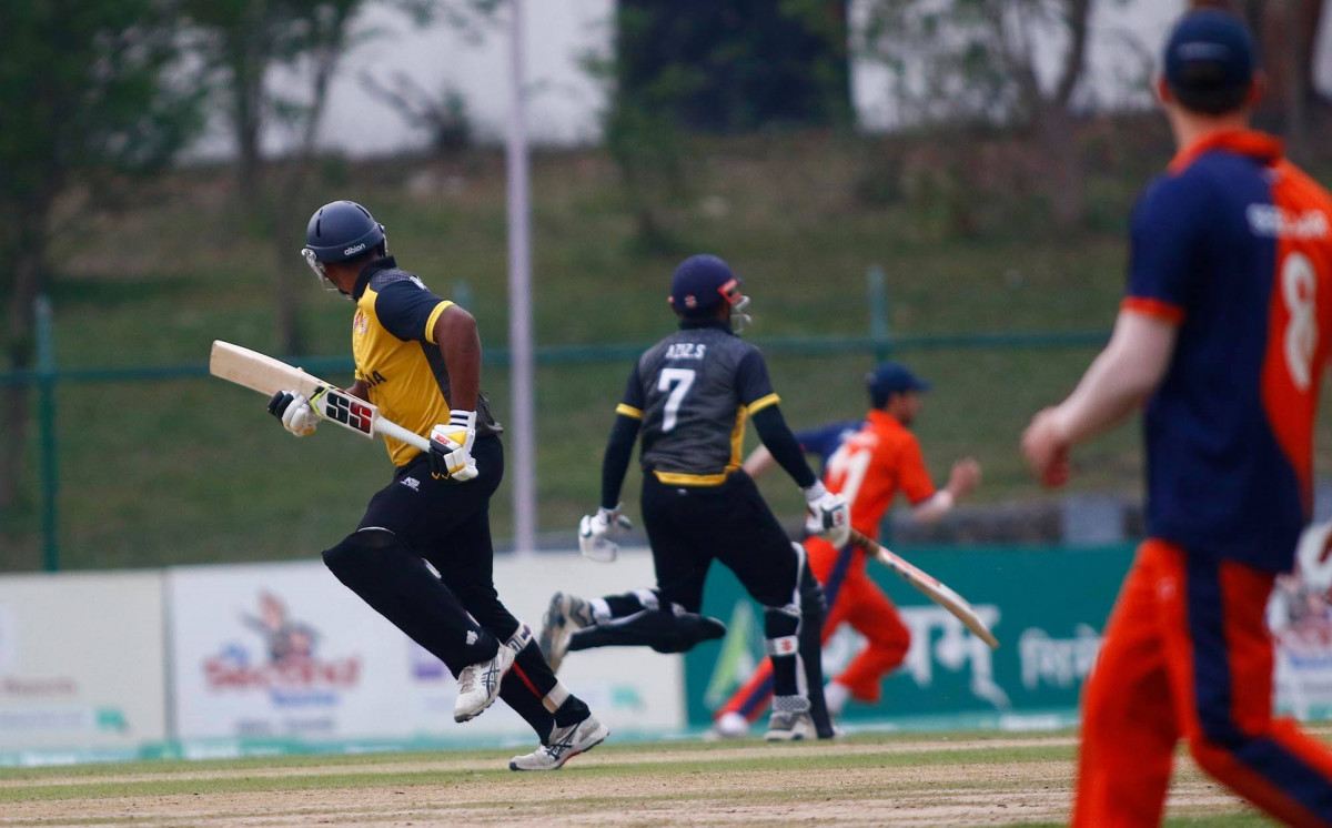 काठमाडौँ । घरेलु मैदानमा जारी त्रिकोणात्मक टी–ट्वान्टी सिरिजअन्तर्गत आज भएको नेदरल्यान्ड्स र मलेसियाबीचको खेल बराबरीमा सकिएको छ । कीर्तिपुरस्थित त्रिवि मैदानमा भएको खेल वर्षाले प्रभावित भएपछि नेदरल्यान्ड्स र मलेसियाले १÷१ अङ्क बाँडेका छन् । वर्षाले पटकपटक प्रभावित गरेको खेलमा नेदरल्यान्ड्सले डिएल पद्धतिका आधारमा मलेसियालाई जीतका लागि १३ ओभरमा १२० रनको लक्ष्य दिएको थियो ।…